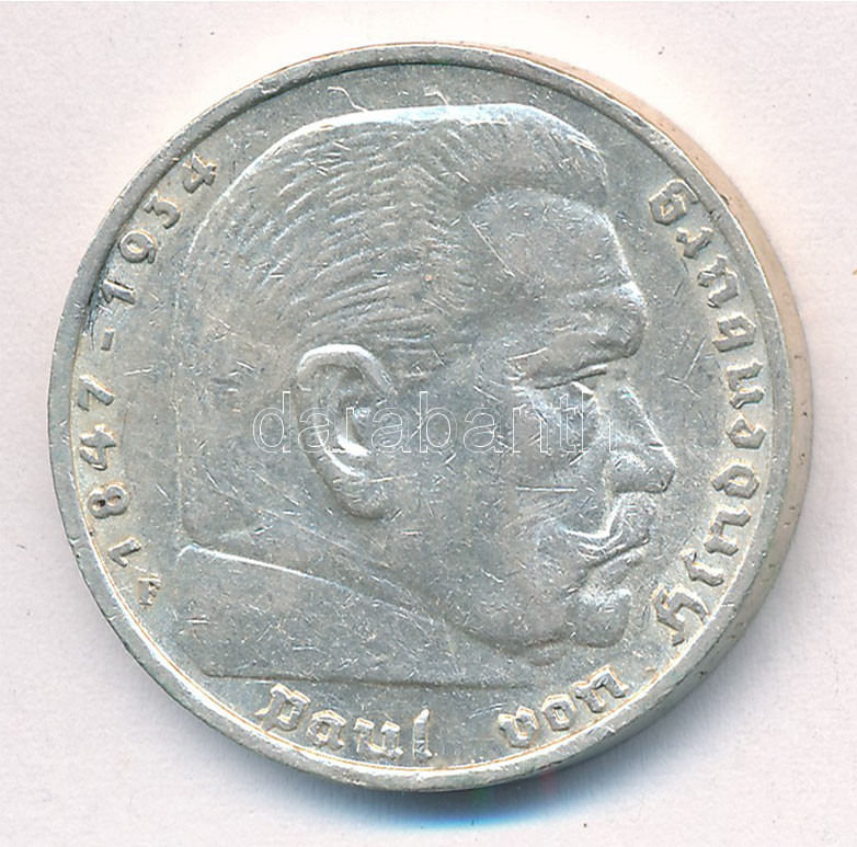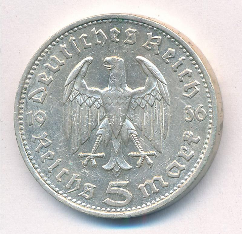 Német Harmadik Birodalom 1936F 5M Ag ‘Hindenburg’ T:1- felületi karc German Third Reich 1936GF 5 Mark Ag ‘Hindenburg’ C:AU surface scratch Krause KM#86<a href="https://www.darabanth.com/hu/gyorsarveres/435/kategoriak~Numizmatika/Kulfoldi-fem-es-ezus