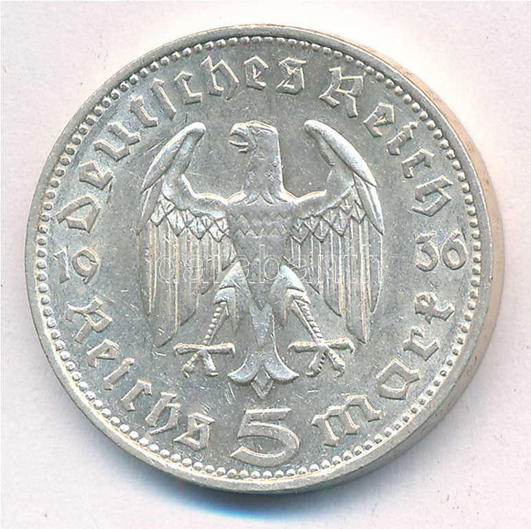 Német Harmadik Birodalom 1936F 5M Ag ‘Hindenburg’ T:1- German Third Reich 1936F 5 Mark Ag ‘Hindenburg’ C:AU Krause KM#86<a href="https://www.darabanth.com/hu/gyorsarveres/432/kategoriak~Numizmatika/Kulfoldi-fem-es-ezustpenzek~1500015/Nemet-Harmadi