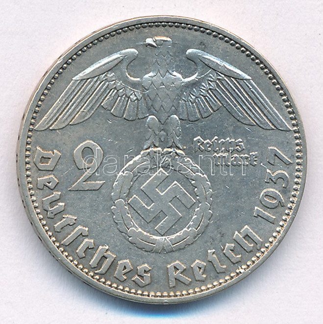 Német Harmadik Birodalom 1937D 2M Ag ‘Hindenburg’ T:2 German Third Reich 1937D 2 Mark Ag ‘Hindenburg’ C:XF Krause KM#93<a href="https://www.darabanth.com/hu/gyorsarveres/439/kategoriak~Numizmatika/Kulfoldi-fem-es-ezustpenzek~500014/Nemet-Harmadik-Bi