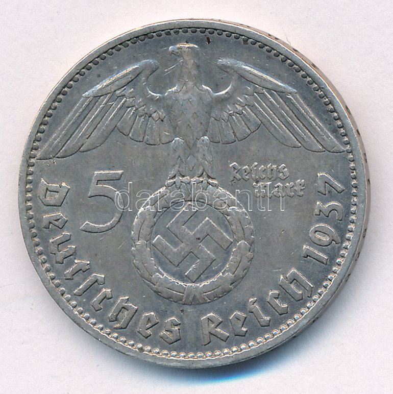 Német Harmadik Birodalom 1937D 5M Ag ‘Hindenburg’ T:XF,VF German Third Reich 1937D 5 Reichsmark Ag ‘Hindenburg’ C:XF,VF Krause KM#86<a href="https://www.darabanth.com/hu/gyorsarveres/438/kategoriak~Numizmatika/Kulfoldi-fem-es-ezustpenzek~1500014/Ne