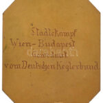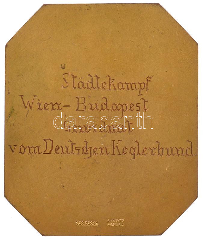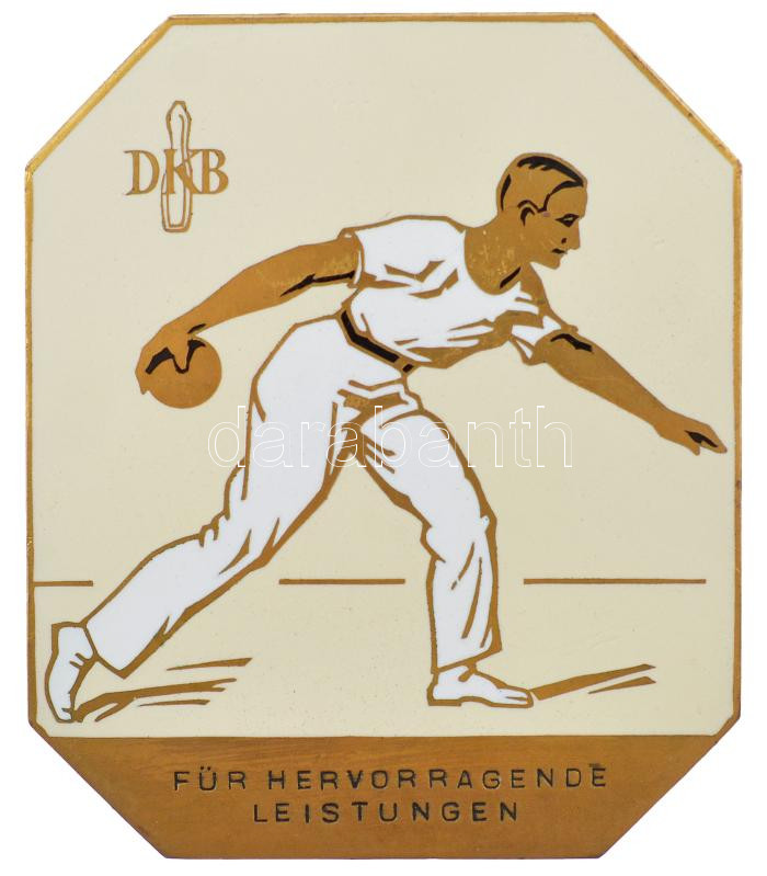 Német Harmadik Birodalom 1938. ‘Német Tekéző Szövetség – Kiemelkedő teljesítményért (DKB – Für Hervorragende Leistungen)’ zománcozott bronz díjplakett, hátoldalán ‘Városi összecsapás Bécs és Budapest között a Német Tekéző Szövetség szervezésében (Städteka