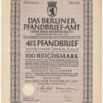 Német Harmadik Birodalom / Berlin 1940. ‘Berlini Kötvényhivatal’ 4 1/2%-os kötvénye 100M-ról, szárazpecséttel, lyukasztásokkal érvénytelenítve T:III German Third Reich / Berlin 1940. ‘Das Berliner Pfandbrief-Amt’ 4 1/2% bond about 100 Mark, with embossed