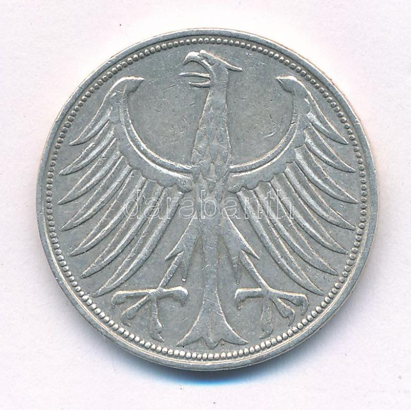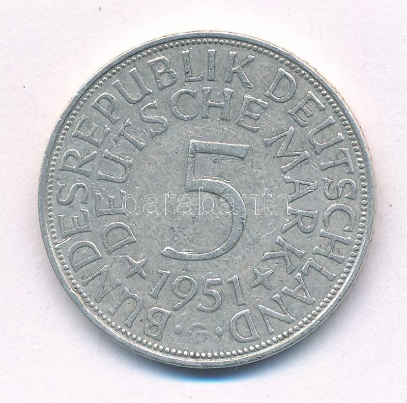 Német Szövetségi Köztársaság 1951G 5M Ag T:2 German Federal Republic 1951G 5 Mark Ag C:XF Krause KM# 112.1<a href="https://www.darabanth.com/hu/gyorsarveres/432/kategoriak~Numizmatika/Kulfoldi-fem-es-ezustpenzek~1500015/Nemet-Szovetsegi-Koztarsasag-