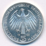 Német Szövetségi Köztársaság 1968G 5M Ag ‘Gutenberg János halálának 500. évfordulója’ T:1,1- Federal Republic Germany 1968G 5 Mark Ag ‘500th Anniversary – Death of Johannes Gutenberg’ C:UNC,AU Krause KM#122