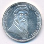 Német Szövetségi Köztársaság 1968G 5M Ag ‘Gutenberg János halálának 500. évfordulója’ T:1,1- Federal Republic Germany 1968G 5 Mark Ag ‘500th Anniversary – Death of Johannes Gutenberg’ C:UNC,AU Krause KM#122