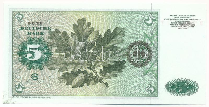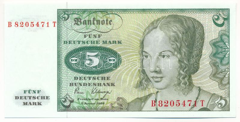 Német Szövetségi Köztársaság 1980. 5M ‘B 8205471 T’ T:UNC Federal Republic Germany 1980. 5 Mark ‘B 8205471 T’ C:UNC Krause#30<a href="https://www.darabanth.com/hu/gyorsarveres/439/kategoriak~Numizmatika/Kulfoldi-bankjegyek~500013/Nemet-Szovetsegi-Ko
