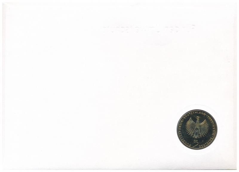 Német Szövetségi Köztársaság 1982F 5M Cu-Ni ‘ENSZ klímaügyi konferencia 10. évfordulója’, ‘Környezetvédelemért’ érmés borítékban, első napi bélyeggel, bélyegzéssel, német nyelvű leírással T:1- FRG 1982F 5 Mark Cu-Ni ’10th Anniversary – U.N. Environmental
