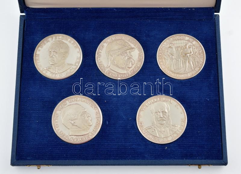 Németország ~1990. ‘Bismarck és korszaka – Történelmi Emlékveret’ jelzett Ag emlékérem szett (6xklf db) eredeti dísztokban (~49,7g/0.999/50mm) T:1- (PP) felületi karc Germany ~1990. ‘Bismarck and His Age – Historical Commemrative Medallion’ hallmarked Ag