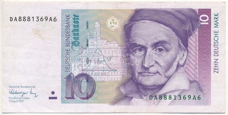 Németország 1991. 10M ‘DA8881369A6’ T:III szép papír Germany 1991. 10 Mark ‘DA8881369A6’ C:F fine paper
