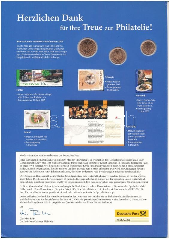 Németország 2004-2005. 1c + 2c + 5c 2xklf szett ‘Deutsche Post’ információs kartonon T:1 Germany 2004-2005. 1 Cent + 2 Cent + 5 Cent 2xdiff set on ‘Deutsche Post’ information cardboard C:UNC