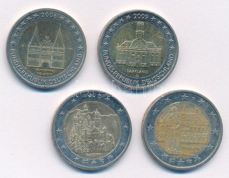 Németország 2006-2012. 2E 4xklf ‘Németországi tartományok’ forgalmi emlékkiadások T:1- patina Germany 2006-2012. 2 Euro 4xdiff ‘German provinces’ circulating commemorative issues C:AU patina<a href="https://www.darabanth.com/hu/gyorsarveres/433/kate