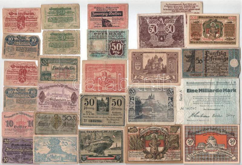 Németország, Ausztria ~1920. 26db-os papír szükségpénz-tétel, közte: Bécs, Potsdam, Bécsújhely, Bad Ischl, Hinterbrühl, Drezda, Helgoland, Süderbrarup, Berlin, Hamburg T:III-IV Germany, Austria ~1920. 26pcs necessity money / notgeld