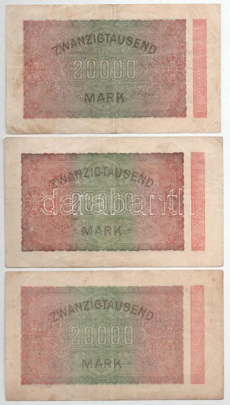 Németország / Weimari Köztársaság 1920. 2M + 1922. 1000M (2x) + 5000M + 1923. 20.000M (3x) + 1933. 50M T:III,III- folt, kis szakadás Germany / Weimar Republic 1920. 2 Mark + 1922. 1000 Mark (2x) + 5000 Mark + 1923. 20.000 Mark (3x) + 1933.