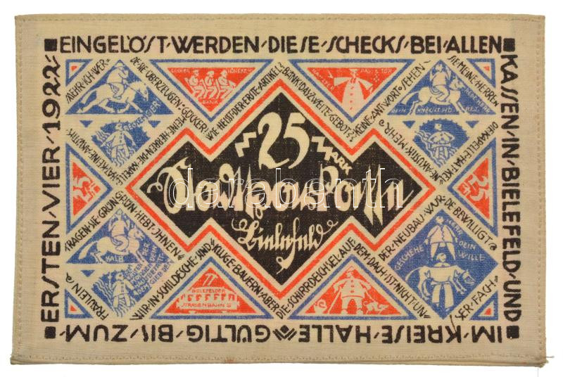 Németország / Weimari Köztársaság / Bielefeld 1921. 25M vászon T:AU / Germany / Weimar Republic / Bielefeld 1921. 25 Mark linen C:AU<a href="https://www.darabanth.com/hu/nagyaukcio/40/kategoriak~Numizmatika/Papir-es-fem-szuksegpenzek~16457/Nemetorsz