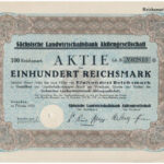Németország / Weimari Köztársaság / Drezda 1926. ‘Szász Mezőgazdasági Bank Részvénytársaság’ részvénye 100M-ról, szárazpecséttel, lyukasztással érvénytelenítve T:I- Germany / Weimar Republic / Dresden 1926. ‘Sächsische Landwirtschaftsbank Aktiengesellscha