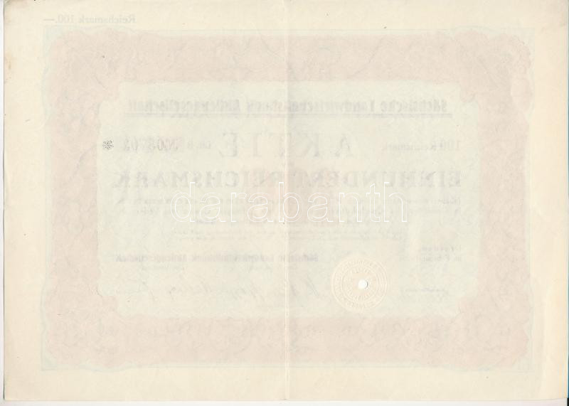 Németország / Weimari Köztársaság / Drezda 1926. ‘Szász Mezőgazdasági Bank Részvénytársaság’ részvénye 100M-ról, szárazpecséttel, lyukasztással érvénytelenítve T:XF Germany / Weimar Republic / Dresden 1926. ‘Sächsische Landwirtschaftsbank Aktiengesellscha