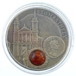 Niue 2010. 1$ Ag ‘Borostyánút / Szombathely’ borostyán darabbal, az egyetlen magyar állomásról készült érme (28,65g/0.925/38,61mm) T:BU / Niue 2010. 1 Dollar Ag ‘Amber Route / Szombathely’ with amber piece, coin commemorating the only Hungarian station (2