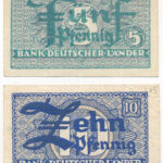 NSZK 1948. 5pf + 10pf T:III GFR 1948. 5 Pfennig + 10 Pfennig C:F Krause P#11, P#12<a href="https://www.darabanth.com/hu/gyorsarveres/436/kategoriak~Numizmatika/Kulfoldi-bankjegyek~2500001/NSZK-1948-5pf-plus-10pf-TIII-GFR-1948-5-Pfennig-plus-10-Pfenn