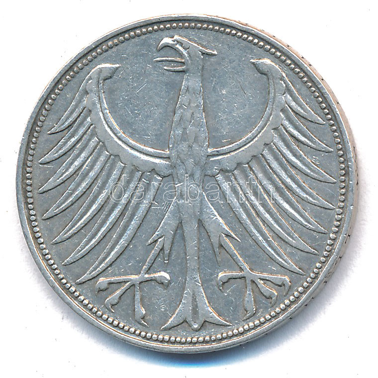 NSZK 1951F 5M Ag T:VF GFR 1951F 5 Mark Ag C:VF Krause KM112.1<a href="https://www.darabanth.com/hu/gyorsarveres/440/kategoriak~Numizmatika/Kulfoldi-fem-es-ezustpenzek~1500017/NSZK-1951F-5M-Ag-TVF-GFR-1951F-5-Mark-Ag-CVF-Krause-KM1121~II2858156/?utm_