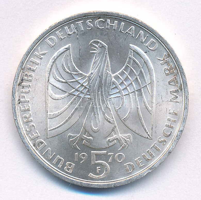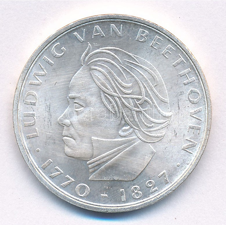 NSZK 1970F 5M Ag ‘Ludwig van Beethoven’ T:1- FRG 1970F 5 Mark Ag ‘Ludwig van Beethoven’ C:AU Krause KM#127<a href="https://www.darabanth.com/hu/gyorsarveres/423/kategoriak~Numizmatika/Kulfoldi-fem-es-ezustpenzek~6000015/NSZK-1970F-5M-Ag-Ludwig-van