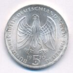 NSZK 1970F 5M Ag ‘Ludwig van Beethoven’ T:1- FRG 1970F 5 Mark Ag ‘Ludwig van Beethoven’ C:AU Krause KM#127
