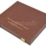 NSZK ~1985. éremtartó doboz az ezüst 5 Márkás érmékhez, egy kivehető tálcával, összesen 60db, 29mm-es férőhellyel, haszánált de jó állapotban