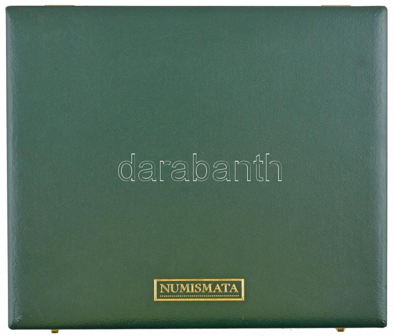 ‘Numismata’ feliratú, műbőr érmetartó kivehető tálcával, összesen 24db 5x5cm-es férőhellyel, használt, szép állapotban