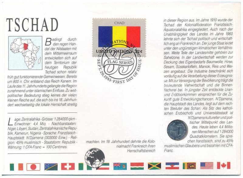 Nyugat-afrikai Államok 1984. 1Fr érmés borítékban, Csád bélyeggel és bélyegzéssel T:1 West African States 1984. 1 Franc coin in letter with Chad stamp C:UNC<a href="https://www.darabanth.com/hu/gyorsarveres/435/kategoriak~Numizmatika/Ermes-es-bankje