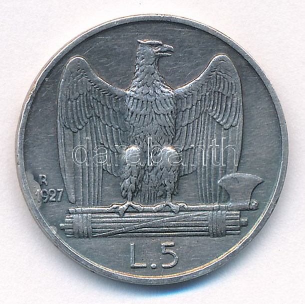 Olaszország 1927R 5L Ag ‘III. Viktor Emánuel’ T:2 patina Italy 1927R 5 Lire Ag ‘Vittorio Emanuele III’ C:XF patina Krause KM#67.1<a href="https://www.darabanth.com/hu/gyorsarveres/433/kategoriak~Numizmatika/Kulfoldi-fem-es-ezustpenzek~2000007/Olaszo