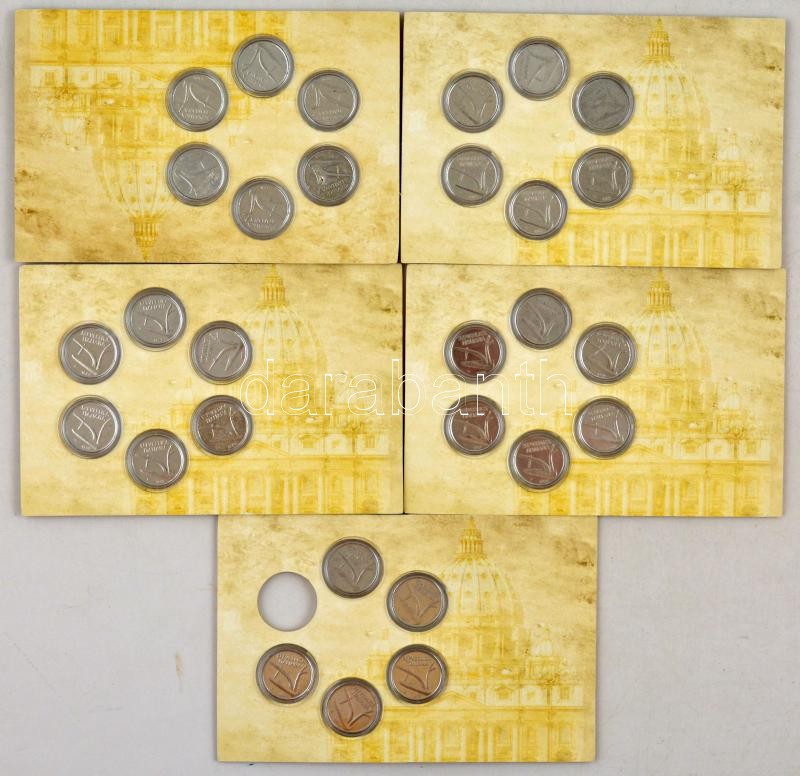 Olaszország 1952-1989. 50L Al (29db) mind különböző vatikáni pápáról készült festéssel, ‘Index Paparum’ karton díszlapokon T:2-3 Italy 1952-1989. 50 Lire Al (29pcs) all with paintings of different Vatican popes, on ‘Index Paparum’ cardboards C:XF-F<