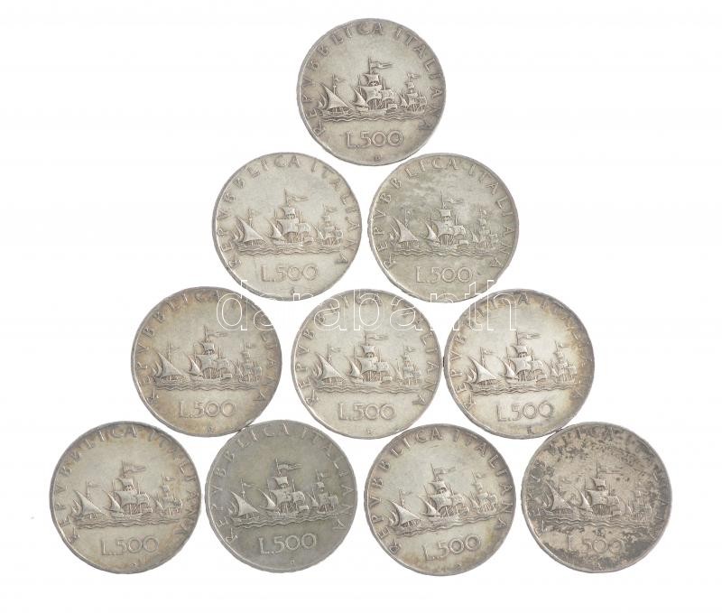 Olaszország 1958R 500L Ag ‘Kolumbusz hajói’ (10x) T:2-3 patina Italy 1958R 500 Lire Ag ‘Columbus’ ships’ (10x) C:XF-F patina Krause KM#98