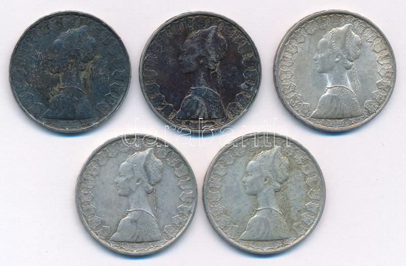 Olaszország 1959R 500L Ag ‘Kolumbusz hajói’ (5x) T:2,2- patina Italy 1959R 500 Lire Ag ‘Columbus’ ships’ (5x) C:XF,VF patina Krause KM#98