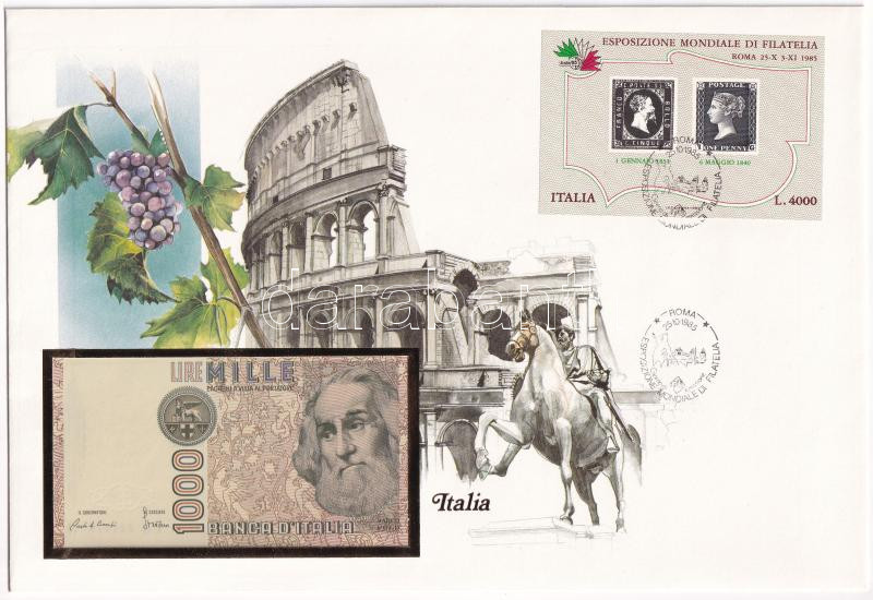 Olaszország 1982. 1000L felbélyegzett borítékban, bélyegzéssel T:I Italy 1982. 1000 Lire in envelope with stamp and cancellation C:UNC<a href="https://www.darabanth.com/hu/gyorsarveres/435/kategoriak~Numizmatika/Ermes-es-bankjegyes-boritekok~1000004