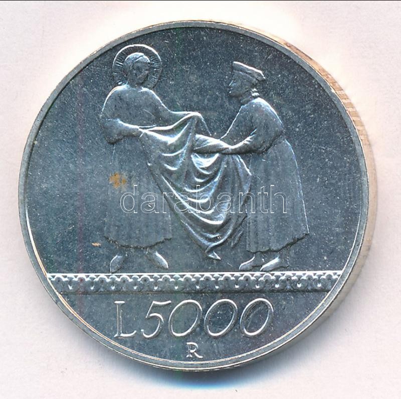 Olaszország 1999R 5000L Ag ‘Szolidaritás’ T:1,1- Italy 1999R 5000 Lire Ag ‘Solidarity’ C:UNC,AU Krause KM#197