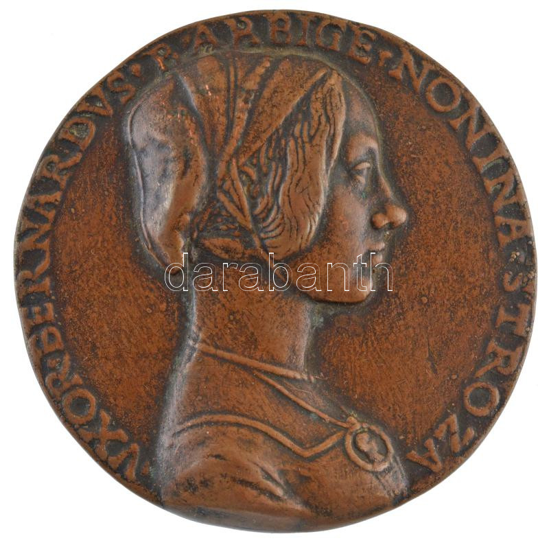 Olaszország DN ‘Bernardus Felesége, Nonina Strozzi’ Niccolo Fiorentino (1430-1514) plakettje alapján készült egyoldalas, gipsszel töltött Cu lemezplakett ‘Dini e Cellai Signa’ gyártói jelzéssel T:1- Italy ND ‘Bernardus Arbige Nonina Stroza’ based on Nicco