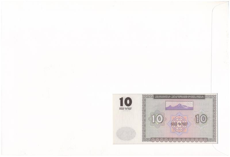 Örményország 1993. 10D felbélyegzett borítékban, bélyegzéssel T:I Armenia 1993. 10 Dram in envelope with stamp and cancellation C:UNC<a href="https://www.darabanth.com/hu/gyorsarveres/435/kategoriak~Numizmatika/Ermes-es-bankjegyes-boritekok~1000004/