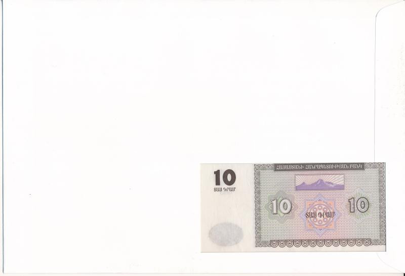 Örményország 1993. 10D felbélyegzett borítékban, bélyegzéssel T:I Armenia 1993. 10 Dram in envelope with stamp and cancellation C:UNC<a href="https://www.darabanth.com/hu/gyorsarveres/436/kategoriak~Numizmatika/Ermes-es-bankjegyes-boritekok~1500004/