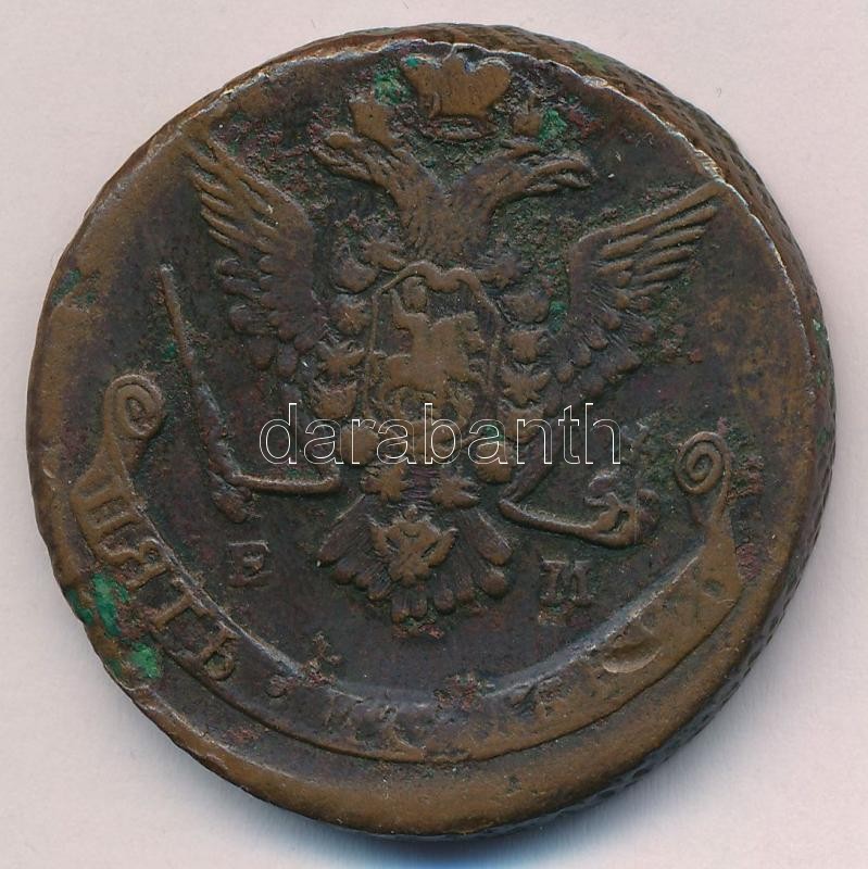 Orosz Birodalom 1777E-M 5k Cu ‘II. Katalin’ T:3 Russian Empire 1777E-M 5 Kopeks Cu ‘Catherine II’ C:F Krause C#59.3<a href="https://www.darabanth.com/hu/gyorsarveres/414/kategoriak~Numizmatika/Kulfoldi-fem-es-ezustpenzek~2000013/Orosz-Birodalom-1777