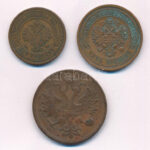 Orosz Birodalom 1859. 5k Cu + 1877. 3k Cu + 1881. 5k Cu T:2-,3 Russian Empire 1859. 5 Kopecks Cu + 1877. 3 Kopecks Cu + 1881. 5 Kopecks Cu C:VF,F Krause Y#6a, Y#11.2, Y#12.2<a href="https://www.darabanth.com/hu/gyorsarveres/432/kategoriak~Numizmatik