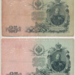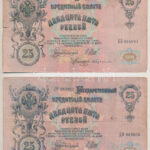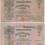 Orosz Birodalom 1909-1912 (1909). 25R Szign.:Konshin + Orosz Birodalom 1912-1917 (1909). 25R Szign.:Shipov (3x) T:III Russian Empire 1909-1912. (1909) 25 Ruble Sign.:Konshin + Russian Empire 19012-1917. (1909) 25 Ruble Sign.:Shipov (3x) C:F szakadás
