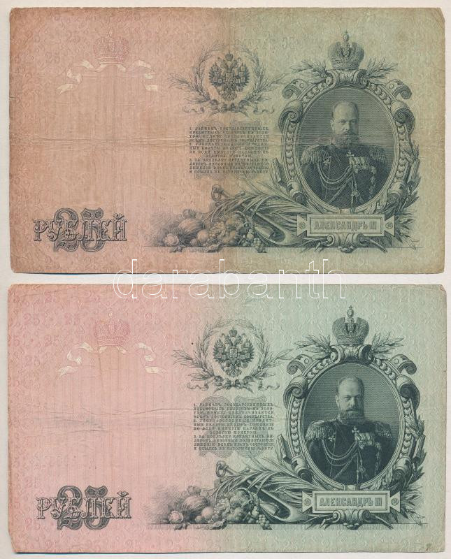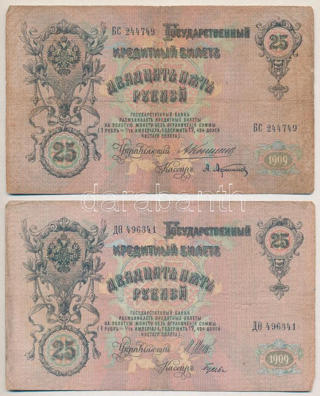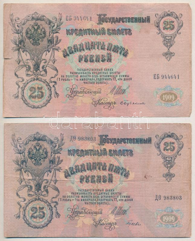 Orosz Birodalom 1909-1912 (1909). 25R Szign.:Konshin + Orosz Birodalom 1912-1917 (1909). 25R Szign.:Shipov (3x) T:III Russian Empire 1909-1912. (1909) 25 Ruble Sign.:Konshin + Russian Empire 19012-1917. (1909) 25 Ruble Sign.:Shipov (3x) C:F
