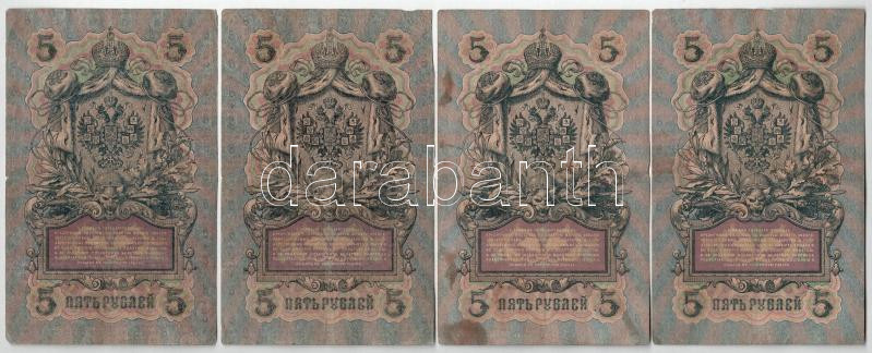 Orosz Birodalom 1912-1917. (1909) 5R Szign.: Shipov (3x) + 5R Szign.: Konshin T:III,III- közte folt, szakadás Russian Empire 1912-1917. (1909) 5 Rubles Sign.: Shipov (3x) + 5 Rubles Sign.: Konshin C:F,VG with spot, tear among them