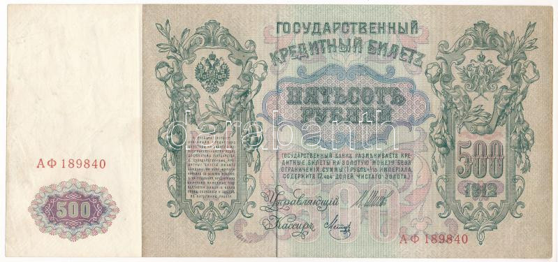 Orosz Birodalom 1912-1917 (1912). 500R Szign.: Shipov T:III Russian Empire 1912-1917 (1912). 500 Rubles Sign.:Shipov C:F Krause P#14<a href="https://www.darabanth.com/hu/gyorsarveres/432/kategoriak~Numizmatika/Kulfoldi-bankjegyek~1500014/Orosz-Bir