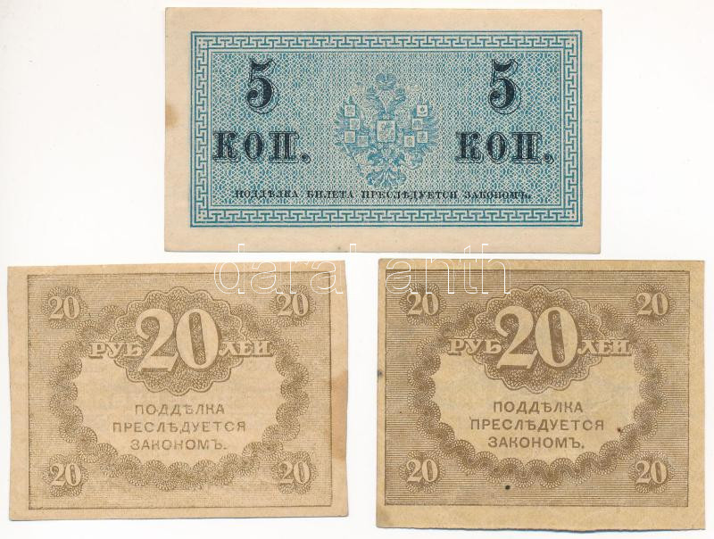 Orosz Birodalom 1915. 5k + 1917. 20R (2x) T:II-III Russian Empire 1915. 5 Kopecks + 1917. 20 Rubles (2x) C:XF-F