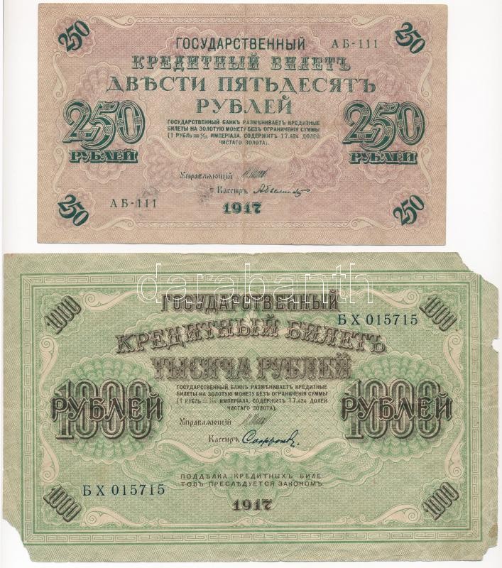 Orosz Birodalom 1917. 250R + 1917. 1000R T:II,III- 1000R anyaghiányokkal Russian Empire 1917. 250 Rubles + 1917. 1000 Rubles C:XF,VG 1000 Rubles with missing material Krause P#36, P#37<a href="https://www.darabanth.com/hu/gyorsarveres/409/kategori
