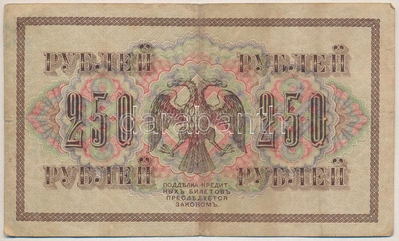 Orosz Birodalom 1917. 250R ‘AA 079’ Szign.: Shipov T:III Russian Empire 1917. 250 Rubles ‘AA 079’ Sign.: Shipov C:F Krause P#36<a href="https://www.darabanth.com/hu/gyorsarveres/433/kategoriak~Numizmatika/Kulfoldi-bankjegyek~2000008/Orosz-Birodalom-