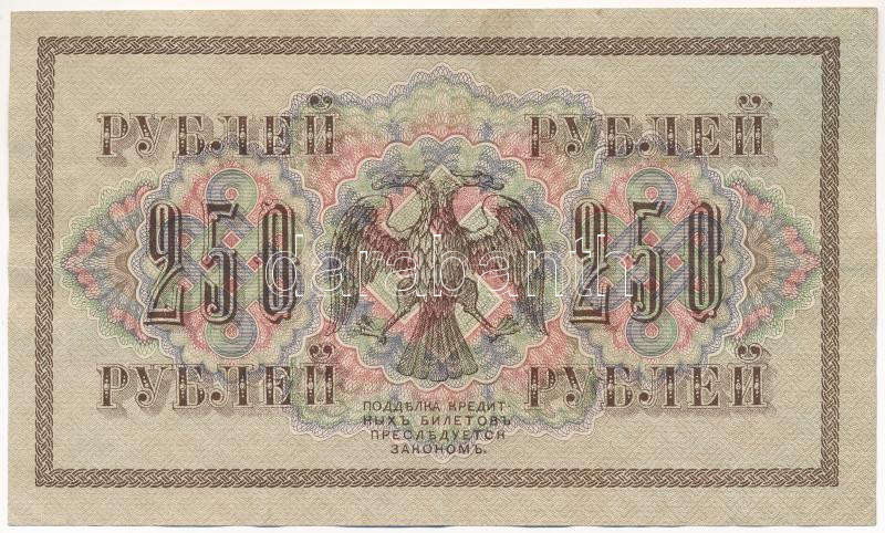 Orosz Birodalom 1917. 250R Szign.: Shipov T:F szép papír Russian Empire 1917. 250 Rubles Sign: Shipov C:F fine paper Krause P#36<a href="https://www.darabanth.com/hu/gyorsarveres/439/kategoriak~Numizmatika/Kulfoldi-bankjegyek~500013/Orosz-Birodalom