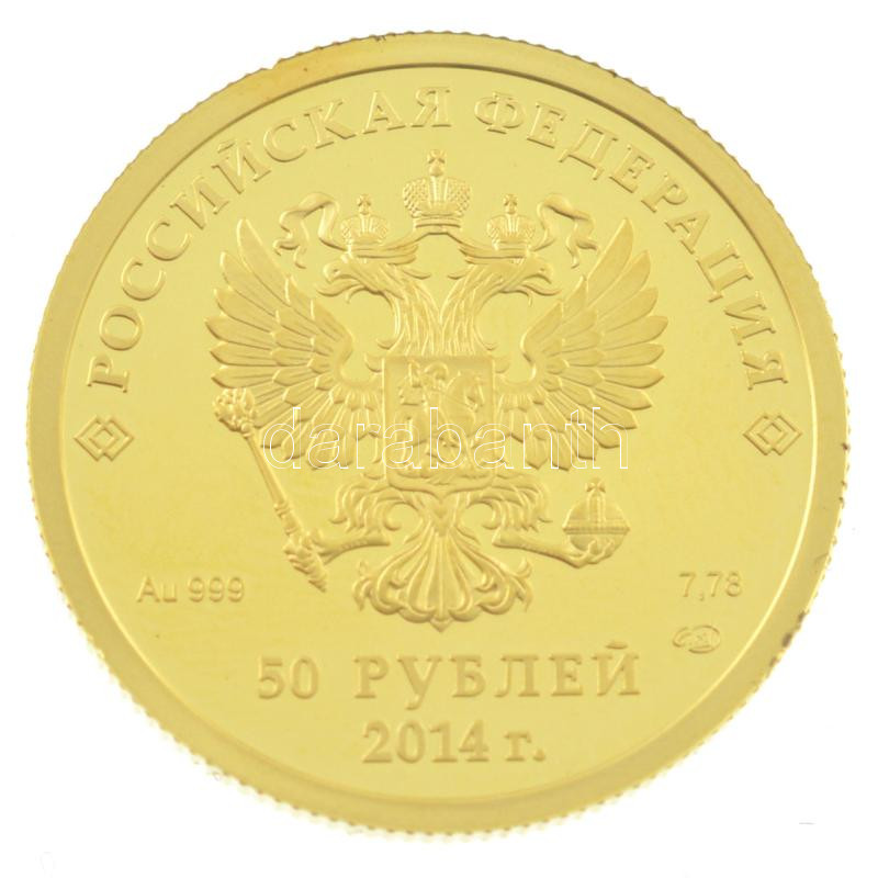 Oroszország 2014. 50R Au ‘Szocsi Téli Olimpia – Bob’ tanúsítvánnyal, tokban (7,84g/0.999) T:PP ujjlenyomat Russia 2014. 50 Roubles Au ‘Sochi Winter Olympics – Skating’ with certificate and capsule (7,84g/0.999) C:PP fingerprint Krause Y#1300<a href=