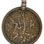 Osztrák Államok / Spork 1723. „Hubertus-érem” dukát jelzetlen Ag leverete, füllel, a Szent Hubertus Vadászrend tagsági jelvénye (21x17mm/2,38g) T:AU patina Austrian States / Spork 1723. „Hubertus-medal” Ag struck of Ducat, with ear, Membership badge of th