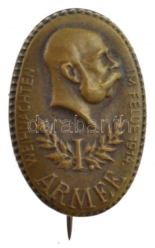 Osztrák-Magyar Monarchia 1914. ‘I. Hadsereg – Karácsony a fronton 1914’ fém jelvény, ‘GUSTAV GURSCHNER’ gyártói jelzéssel (27x18mm) T:’2 / Austro-Hungarian Monarchy 1914. ‘I. Armee – Weihnachten im Felden 1914’ metal badge, with ‘GUSTAV GURSCHNER’ maker’s